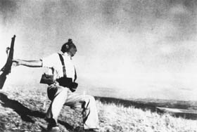 Antes do instantâneo, e dentro de sua herança pictórica, a fotografia adotou estratégias idealizadoras para passar do mundo em movimento à imagem estática: a seleção de momentos exemplares e simbólicos para cada objeto e personagem que juntos davam à imagem certo efeito retórico, evidenciando o papel desempenhado por cada um desses elementos. O instantâneo parece então livrar a imagem dessa carga simbólica trazida pela pose e pelos arranjos cenográficos, buscando trocar a capacidade discursiva da imagem pela espontaneidade da captação. Arlindo Machado (1984, p. 45-47) já sugeriu, entretanto, que o uso do aparato fotográfico representa, por si mesmo, a inserção de um outro elemento codificador e não a abolição do código. De fato, o instantâneo se desenvolveu dentro de uma linguagem própria: admiramos um movimento congelado porque ele nos permite ver em detalhes a posição do sujeito, sua anatomia, sua relação com outros objetos e com o espaço, mas também porque faz tudo isso sem destruir o sentido do movimento. Lembremo-nos da célebre fotografia de Robert Capa, de 1936, a qual mostra o momento em que um soldado republicano espanhol é derrubado por um tiro. Se, por um lado, a imagem é impactante porque prolonga diante do nosso olhar o doloroso momento da morte, por outro, não deixa de nos informar sua ação: a de um soldado que corre num ambiente tenso, e que logo em seguida desabará sobre o solo. O instante continua, portanto, sendo um instante exemplar, expressivo, um instante-síntese do movimento que não poderá esconder totalmente, mesmo que não o contenha.